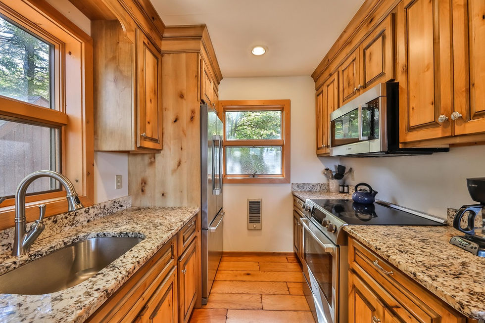 An abundance of natural light and impressive landscaping establish the setting as you step into this beautiful 4-bedroom 3.5 bath mountain home. Panoramic, stunning views from every room, spacious living room with cozy, tasteful furnishings, striking stone wood burning fireplace, bright kitchen with granite counters, solid maple cabinetry and Bosch appliances. Large dining area with ample seating. Sliding doors out to the first of two huge new decks. This home offers a first floor ensuite primary bedroom with sliders out to the deck. The second level offers a second ensuite primary bedroom, a loft with pull out couch and an office nook. The lower level offers 2 more bedrooms, both with 2 sets of bunks (each room sleeps 4), plus a full bath and wonderful family room with propane heat stove, not to mention more sliders out to decking! New deck with cable railing system, new large hot tub, outdoor sauna, easy walk to the slopes! Roof, skylights, deck cable rail system, conversion to propane heat, with heat pump backup, whole house air conditioning, security system, Wi-Fi thermostats, full house generator, automated lighting, and door locks. Being sold fully furnished! Don’t miss this opportunity to be part of the four-season community at Windham Mountain.