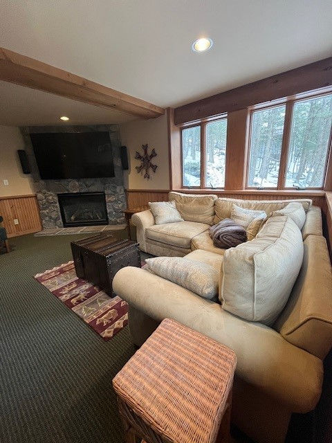 Walk to the slopes! Enjoy a perfect weekend or week or more, in this beautiful chalet with warm wood interiors, vaulted ceilings, and wood burning fireplace. High end kitchen with stainless steel appliances, wolf stove, and open concept living space. Plenty of room for family and friends with 4 bedrooms, plus extra bunkroom. The lower-level delights with family room, second (gas) fireplace, bar, 2 bedrooms with 2 full baths, shuffleboard, huge boot and ski room! Take in the breathtaking views as you relax in the peace and tranquility of this superior home. Open to renting for a weekend, week or longer! We are in the midst of one the best ski seasons ever! Don’t miss out on the adventure!